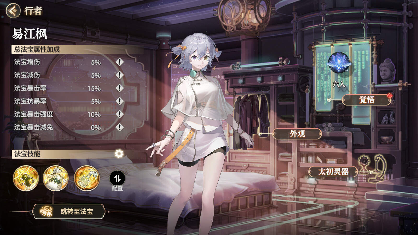 在界面左下角,玩家可以配置法寶技能